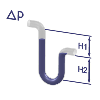 1. Die Höhe des Siphons muss entsprechend dem Differenzdruck des Gebläses ausgelegt sein. Dadurch wird sichergestellt, dass das im Siphon stehende Medium nicht durch den Unterdruck der Filteranlage eingesaugt wird.