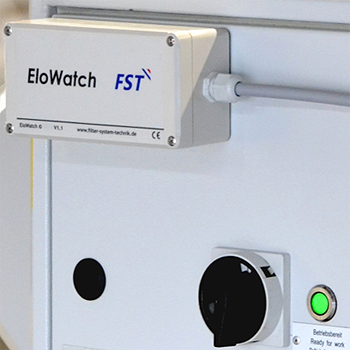 Um frühzeitig Filterverschmutzungen, sowie auch Ausfälle an Ihren Filteranlagen zu erkennen, kann mit dem EloWatch Filterüberwachungssystem die Funktion der Hochspannungseinheit (bei Elktrofiltern) und Differenzdruck- / Volumenstromsensoren (bei mechanischen Filtern) überwacht und in Echtzeit auf einem PC oder mobilen Geräten angezeigt werden. Damit erfüllen die Betreiber die Pflichten der DGUV Regel 109-002 (Abs. 6.6), welche selbsttätig wirkende Warneinrichtungen vorschreibt.