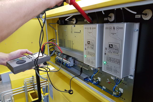 Hochspannungserzeuger an elektrostatischen Absauganlagen erzeugen aus einer eingangs Wechselspannung von 230V eine geregelte Gleichspannung von bis zu 12kV um im Ionisator und Kollektor ein Spannungsfeld zu erzeugen.
